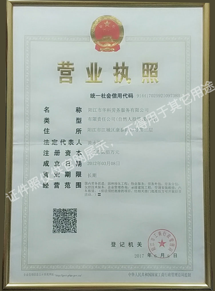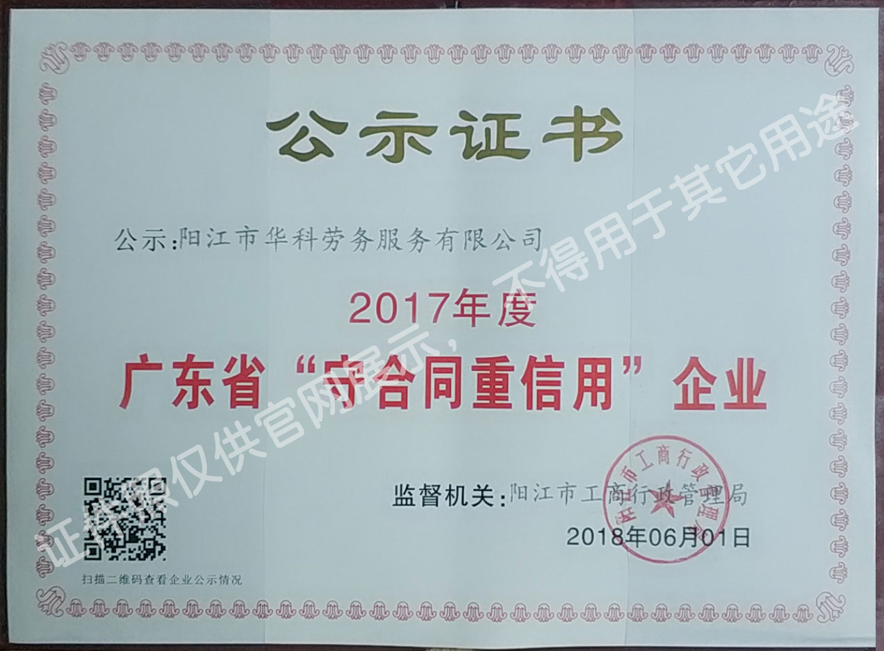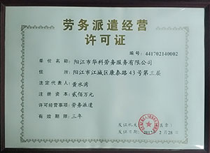 陽(yáng)江市華科勞務(wù)服務(wù)有限公司是專(zhuān)業(yè)從事勞務(wù)外包、人事代理、勞務(wù)租賃、人力派遣及管理的綜合性服務(wù)機(jī)構(gòu),是首批獲得廣東省人力資源廳、陽(yáng)江市勞動(dòng)和社會(huì)保障局頒發(fā)人力資源許可證的合法單位?!罢\(chéng)信務(wù)實(shí)、專(zhuān)業(yè)熱情、滿(mǎn)意第一、服務(wù)社群”的經(jīng)營(yíng)理念,在勞務(wù)派遣業(yè)務(wù)的基礎(chǔ)上,更致力于合同制工人(臨時(shí)工、實(shí)習(xí)生、假期工)方向發(fā)展,為用工企業(yè)及時(shí)輸送合格的各類(lèi)人才,合理調(diào)配人力資源的有序流動(dòng),幫助求職者尋求更加滿(mǎn)意的就業(yè)渠道和崗位,切實(shí)維護(hù)求職者的合法權(quán)益。
